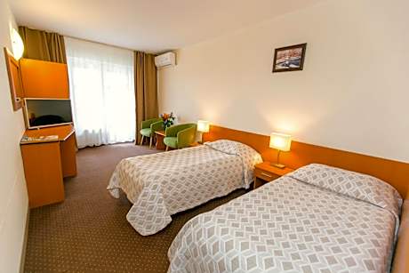 Located 1640 feet from the center of Baile Felix, Hotel Poienita features a restaurant, an indoor pool, and a treatment center with modern facilities for hydrotherapy, physiotherapy and electrotherapy. All rooms at Poienita Hotel are fitted with a balcony, a cable TV, and a private bathroom with a bath or a shower and free toiletries. Guest can enjoy the beach with the sun lounges, bar and eating area. The accommodations offers 2 swimming pools with thermal water and a special pool for children. The property also consists of an à la carte restaurant which serves both traditional and international cuisine. Half board and full board are available. The Baile Felix Train Station is 0.6 mi away, while the Oradea International Airport can be reached within 9.3 mi.
