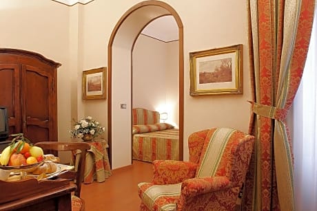 Room with attached bathroom with air conditioning, a flat-screen TV, and a mini-bar. It has 2 separate sleeping areas.