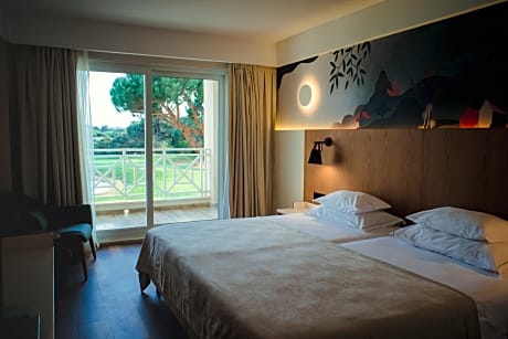 Onyria Quinta da Marinha Hotel is a luxury resort located in the Sintra-Cascais Natural Park overlooking the Atlantic Ocean. It has an 18-hole golf course and 2 restaurants. Each of Onyria Quinta da Marinha's air-conditioned rooms has a spacious balcony with panoramic views of the golf course or the Sintra mountain range. Rooms also include a mini-bar, flat-screen TV and a private bathroom with Molton & Brown amenities. Five Pines Restaurant offers international buffet meals and Rocca serves gourmet Portuguese cuisine made from organic vegetables grown on-site. Live music can be heard at the Trent Jones bar. At the spa, guests can enjoy a relaxing pedicure or body treatment. There is also an indoor pool. Located in the coastal town of Cascais, Onyria Quinta da Marinha Hotel is 2.5 mi from Guincho Beach. It is a 35-minute drive from Lisbon's historic areas, like Chiado, Rossio and Bairro Alto. Scenic and beautiful Sintra is at a short drive and is renowned for its stunning sights and monuments. The property is 23 mi from Lisbon International Airport.
