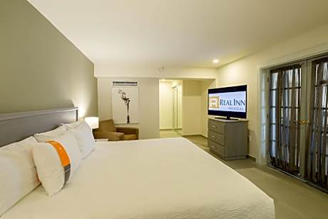 El Real Inn se encuentra a solo 5 minutos a pie de la estación de tren de Mexicali y ofrece conexión WiFi gratuita y piscina al aire libre. Las cómodas habitaciones disponen de aire acondicionado, caja fuerte, TV de pantalla plana por cable y vistas a la ciudad. Los baños privados incluyen artículos de aseo. El restaurante Stock Cafe está especializado en cocina mexicana e internacional. El establecimiento también cuenta con gimnasio, centro de negocios y salas de reuniones. El Real Inn Mexicali ofrece aparcamiento cubierto. La frontera con Estados Unidos está a 10 minutos en coche del Real Inn y la plaza de toros de Calafia se encuentra justo enfrente del establecimiento.