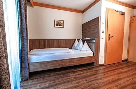 Single room with balcony, bathroom with shower, WC and hairdryer, satellite TV, telephone and room safe.