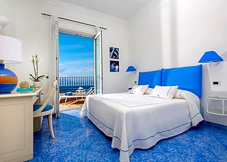 Everything at the Relais Maresca features a characteristic Capri style: the rooms with Vietri tiles, its beachfront position, the panoramic terrace with views of Mount Vesuvius, the excellent cuisine. Relais Maresca is just a few steps from the beach, on the Marina Grande promenade. From the establishment you can easily reach the famous Grotta Azzurra, and you can book boat tours around the island directly at reception. The roof garden and sun terrace is the ideal spot for a light lunch or an ice-cream while sunbathing or relaxing in the shade. Here you can get together in the evenings, meet friends for a cocktail at sunset, enjoy a bottle of fine wine and a selection of cold meats and cheeses, or a drink before going to bed. The bar on the ground floor features a reading room and TV room and prepares great coffee and refined cocktails. The restaurant La Terrazza, on the 4th floor, serves delicious regional specialties, and the chance to enjoy with the amazing view of Vesuvius.