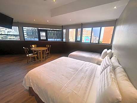 The quadruple room includes a private bathroom fitted with a shower, a bidet and a hairdryer. The air-conditioned quadruple room offers a flat-screen TV with cable channels, soundproof walls, a tea and coffee maker, a safe deposit box as well as city views. The unit has 2 beds.