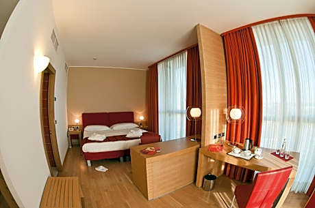 Featuring a furnished garden and a restaurant, B&B HOTEL Remilia is 1.9 mi from the historic center of Reggio Emilia. The Reggio Mediopadana Train Station is a 15-minute walk away. Offering free WiFi and air conditioning, rooms are modern and soundproofed. Each includes a flat-screen TV, a mini-bar and a private bathroom. Some rooms also include a balcony. The Et Voilà restaurant offers local specialties and Italian classics, and the lounge bar is open until late every day. Guests enjoy an extensive continental breakfast every morning. The property is located in a strategic position, 1.2 mi from the Reggio Emilia exit of the A1 motorway and a 3-minute drive from the Fiere di Reggio Emilia exhibition center.