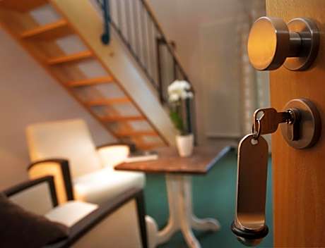 This maisonette-style double room consists of 2 floors connected by stairs and features a balcony.