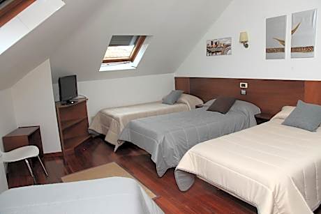 The Hotel Restaurante Rúas can be found in the historic center of Pontevedra, close to Plaza de la Leña. It offers simple rooms with free Wi-Fi and plasma-screen TV. The large rooms have dark wood floors and cream-colored walls. Many also have attractive views of the city’s historic quarter. Air conditioning is provided in summer. The restaurant of the Hotel Restaurante Rúas serves traditional Galician meals and tapas. It has a terrace in the Plaza de la Leña. The hotel is close to the Museo Regional de Pontevedra. Free public parking can be found nearby.