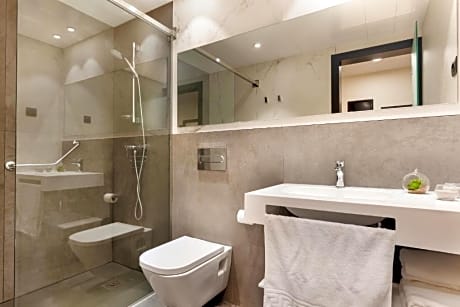 This smart triple room features parquet floors and large floor-to-ceiling windows. It has a work desk and includes satellite TV and a safe. The private bathroom shower includes free toiletries and a hairdryer.