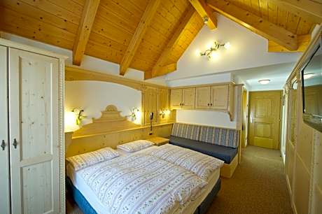 Boasting a mountain-view balcony, this Alpine-style room features a flat-screen TV with satellite channels and a sofa.