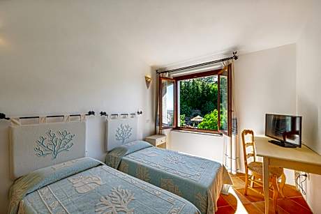 Admire the beautiful view of the coast of Corsica while you enjoy delicious, Sardinian cuisine at the traditional restaurant at Hotel San Trano. This friendly hotel is set in a tranquil, green area on the hilltop of Monti Juanni. It is an excellent base for exploring the countryside in the north of Sardinia and is a favorite with cyclists and nature lovers. Your guest room is complete with Satellite TV and air conditioning. During the day you can relax by the pool and in the large garden. The bar provides drinks and snacks, while the restaurant is perfect for an evening meal with a view.