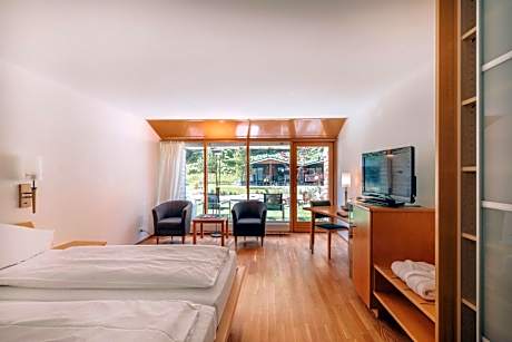 Surrounded by a large park, Hotel Schloss Ragaz is located on the outskirts of Bad Ragaz, next to the golf course and the Tamina thermal spa. The property offers a wellness area and a seasonal outdoor pool (open from May to September). The spa area, located in a pavilion, features a relaxation room, hot tub, massage showers, a Finnish sauna, and steam and aroma baths. Massages are also available. Hotel Schloss Ragaz offers three types of accommodations: Nature Park Hotel: Traditionally furnished rooms in the historic castle and the Residenz Sonderegger provide a stylish and peaceful retreat. Garden Pavilions: Bright, tranquil rooms surrounded by nature, ideal for pure relaxation. Glamping Lodges: Comfortable lodges offering an individual and laid-back atmosphere, with full access to the hotel’s services. Guests staying at Hotel Schloss Ragaz can purchase discounted admission tickets to the Tamina Therme, located just 656 feet away. Guests of the Glamping Lodges enjoy free daily access to the spa for 2 hours. The on-site restaurant serves Indian and European cuisine, and a daily breakfast buffet is available. Free private parking is provided.