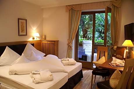 Hotel Sittnerhof is located in a green, quiet and panoramic position just a short walk from Merano's historic center. There is a large, free wellness center on site. The Sittnerhof is surrounded by vineyards and olive trees and has gardens with pool and hot tub. There is a peaceful terrace with sun beds. The spa center at Hotel Sittnerhof has saunas, Turkish baths, special showers and more. You can also book massage and beauty treatments. There is also a heated indoor pool. Hotel Sittnerhof has a bar and lounge with a real fire. The restaurant serves regional dishes. Rooms here are spacious and comfortable. They all have balconies and satellite TV.