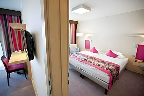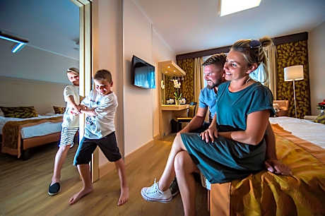Hotel Sopron is located just 10 minutes' drive to the Austrian – Hungarian border and offers a unique view of the historic part of Sopron. Free WiFi access is available in all areas. Each unit consists of a flat-screen TV with satellite channels, as well as a telephone, while there is an private bathroom with a hairdryer. Some units also come with a balcony. Guests can enjoy the Sky Wellness with unique city panorama free of charge after a registration and deposit. The services include an infrared cabin, salt chamber, Finnish sauna, steam cabin, whirlpool, relax room and smaller fitness room. Guests can enjoy a meal at the on-site restaurant at Hotel Sopron, as well as relax in the garden or on the terrace. There is also a free fitness room, while you can play tennis and darts for a surcharge. For half board, dinner is served as a three-course menu or a buffet buffet for more than 25 people (18:00-21:00). The Firewatch Tower and the Medieval Synagogue can be reached in a 10-minute walk. Our hotel hosts weddings, balls and other events all year round, which can lead to increased guest traffic and noise effects! In addition, we would like to inform you that during these events the half-board dinner is available to our guests in the Kékfrankos Hall. Sopron Train Station is 0.9 mi away. License Number(s): SZ19000306