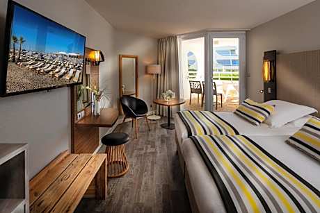 The spacious double room provides air conditioning, a mini-bar, a balcony with pool views as well as a private bathroom featuring a bath. The unit offers 1 bed.