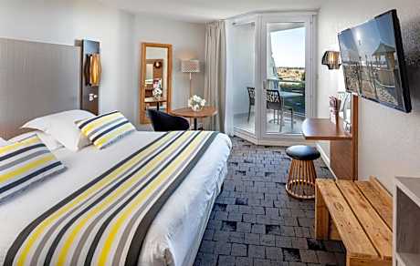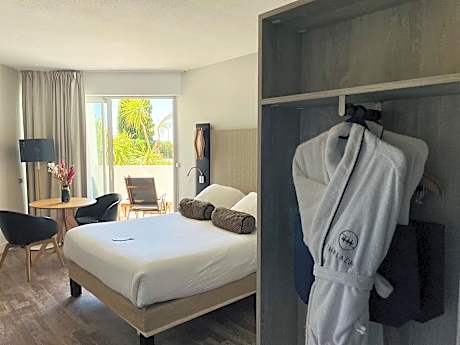 The Hotel Thalazur Port-Camargue, ideally located on the Mediterranean coast in Languedoc Roussillon at Grau du Roi, welcomes you in a relaxing and exotic setting. The hotel enjoys an ideal location and stunning views of the Mediterranean. Sun, water and sand are the promise of a successful stay. Our rooms all have a terrace or balcony, facing the sea, port or garden. On the 6th floor, facing the sea, the restaurant area offers you a journey of flavors through local and seasonal products. A few yards from the hotel, our beach restaurant offers, from May to September, daily salads, grilled meats and regional menus. Zen and warm atmosphere for a guaranteed relaxation break in the shade of the parasols and on your deckchair, with your feet in the water. The thalassotherapy and its different areas offer you many opportunities to relax during your stay. Thalazur Port-Camargue, the ideal place for a complete change of scenery away from your daily life.