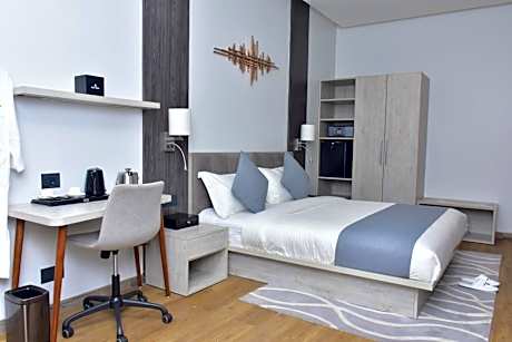 Located in Kinshasa, 11 miles from Mbatu Museum, Hotel Stella has accommodations with a terrace and free private parking. The property provides a 24-hour front desk, airport transportation, room service and free WiFi throughout the property. The hotel will provide guests with air-conditioned rooms offering a closet, a coffee machine, a fridge, a minibar, a safety deposit box, a flat-screen TV and a private bathroom with a shower. The breakfast offers buffet, continental or Full English/Irish options. N'djili Airport is 5 miles away.