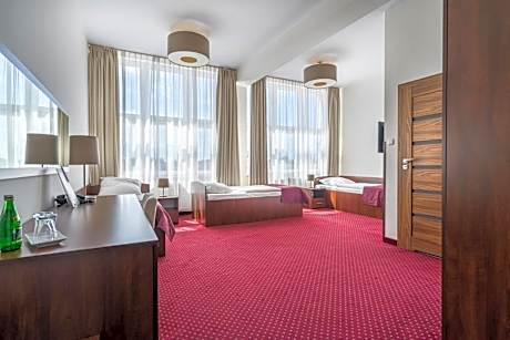 Located in the quiet surroundings in Brodnica’s town center, 3-star Hotel Stork offers accommodations with free Wi-Fi. The nearest lake of the Brodnica Lake District - Niskie Brodno is 1.4 mi away. The rooms at Stork feature a elegantly decorated and feature a flat-screen TV with cable channels. There is a seating area with a table with chairs and a bathroom with a shower in each of them. The large and modern restaurant offers breakfast buffet daily and guests can also enjoy meals of Polish cuisine. Brodnica Train Station is 0.8 mi away and the Drwęca River is 656 feet away.