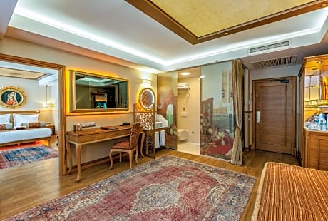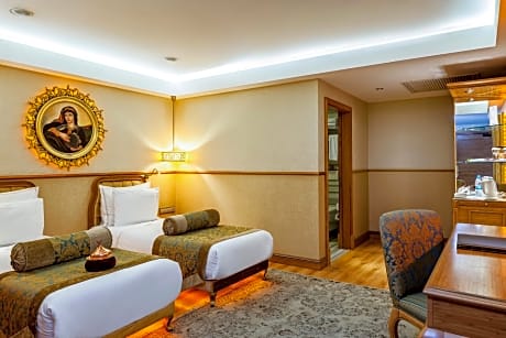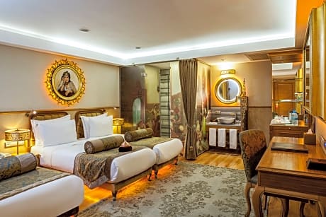 El Hotel Sultania ofrece servicios e instalaciones de primera categoría para garantizar la máxima comodidad a sus huéspedes. Comparta sus fotos y responda a sus correos electrónicos con total comodidad gracias al acceso wifi gratuito que ofrece el hotel. Si necesita transporte desde o hacia el aeropuerto, el hotel puede organizarlo antes de su llegada. El servicio de taxis del hotel facilita descubrir Estambul. Disponemos de servicios de recepción como conserjería, check-in o check-out exprés, consigna de equipaje y cajas de seguridad para satisfacer sus necesidades. Conseguir entradas de primera clase y reservar en restaurantes de lujo es muy sencillo gracias al servicio de venta de entradas y tours del hotel. Viajar con el mínimo equipaje es posible en el Hotel Sultania, ya que el servicio de tintorería y lavandería garantiza que sus prendas se mantengan frescas. Las comodidades de la habitación, como el servicio de habitaciones 24 horas, el servicio de habitaciones y el servicio de limpieza diario, contribuyen a una estancia perfecta. El hotel mantiene una zona completamente libre de humo, lo que proporciona un ambiente respirable. Cada habitación del Hotel Sultania está cuidadosamente diseñada y decorada para brindar a los visitantes un ambiente cómodo y hogareño. En algunas habitaciones, el hotel ofrece servicio de ropa de cama, cortinas opacas y aire acondicionado para su comodidad y satisfacción. En el Hotel Sultania, las habitaciones, diseñadas a medida, ofrecen una configuración que se asemeja a un balcón o una terraza. En algunas habitaciones, los huéspedes pueden disfrutar de entretenimiento de primera clase con televisión, transmisión de video y televisión por cable. Tenga la seguridad de que en algunas habitaciones seleccionadas encontrará la comodidad de agua embotellada, cafetera o tetera, café instantáneo, té instantáneo y minibar. El Hotel Sultania ofrece secador de pelo, artículos de tocador y albornoces en los baños de algunas habitaciones. Sumérjase en el salón ejecutivo, donde le esperan comodidades excepcionales y un entorno de lujo. Disfrute de sus vacaciones de la mejor manera. Comience cada mañana con un desayuno en el hotel. Si prefiere no salir a comer, la exquisita oferta culinaria del hotel siempre está disponible para su satisfacción. Sean cuales sean sus necesidades dietéticas, tenga la seguridad de que el Hotel Sultania ofrece una variedad de opciones halal para garantizar una experiencia gastronómica inolvidable. Disfrute de una velada inolvidable con sus compañeros de viaje, a poca distancia, en el bar del hotel. El Hotel Sultania ofrece una magnífica variedad de servicios de ocio para el disfrute de sus huéspedes. Relájese después de un largo día con un masaje, baño de vapor, spa y sauna para rejuvenecer sus sentidos. Cada día, sumérjase en las vigorizantes aguas de la piscina, perfectas para un chapuzón revitalizante o una serie de largos revitalizantes. Si no quiere saltarse su rutina de ejercicio, visitar el gimnasio del hotel le garantiza mantener su vitalidad y bienestar.