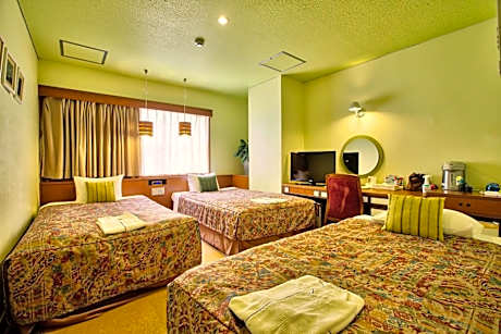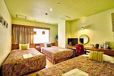 At Hotel Sun Palace Kyuyokan, exceptional service and top-notch amenities create a memorable experience for guests. Complimentary internet access is available in the hotel to ensure you stay connected during your visit.For guests with their own vehicle, parking facilities are provided.Continuously receive the support you require through front desk amenities such as luggage storage.At the hotel, utilize the convenient laundromat to maintain your preferred travel attire fresh, allowing you to pack lighter.For the health and well-being of all guests and staff, smoking is restricted exclusively to assigned zones. Accommodations come equipped with all the conveniences required for a restful night's slumber.A selection of rooms feature linen service and air conditioning to ensure your comfort and convenience.A number of rooms feature television for guest amusement and enjoyment. In certain rooms, the hotel offers visitors access to a refrigerator and bottled water. Hotel Sun Palace Kyuyokan offers a hair dryer and toiletries in the restrooms of specific accommodations. Allow your journey to be free from the pangs of hunger! On-site eateries offer delicious and accessible meal choices. At Hotel Sun Palace Kyuyokan, affordable refreshments are available 24/7 through the convenient vending machines on-site.