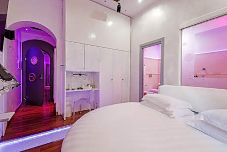 Set in a historic building in the heart of Rome, Hotel Trecento is located on the popular Via del Corso street, just 656 feet from the Vittoriano monument. It offers free WiFi, and air-conditioned rooms with 65 to 80" Smart TVs With chromotherapy features and a Bose sound system, these modern rooms include soundproofing and a mini-bar. Each has a private bathroom with a large crystal shower and slippers, and most have bathrobes. Busses stopping 98 feet from this eco-friendly property link with Termini Train Station. You can reach the Trevi Fountain and the Pantheon in 5 minutes on foot. License Number(s): 058091-ALB-01061, IT