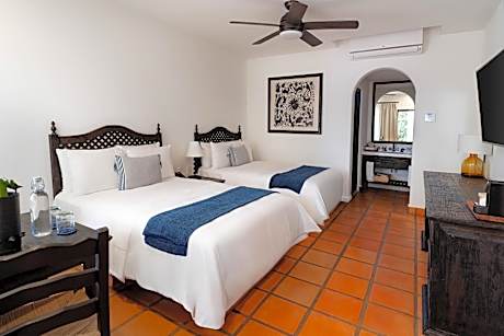 Bienvenido a Tropicana Los Cabos, Tapestry Collection by Hilton: donde el arte, la cultura y el lujo se fusionan. Ubicado cerca del vibrante Distrito de Galerías de San José del Cabo y a solo 20 minutos del Aeropuerto Internacional de Los Cabos, Tropicana Los Cabos le invita a experimentar el encanto de la hospitalidad mexicana con la elegancia de Hilton. Este hotel boutique de 4 estrellas combina la comodidad contemporánea con la auténtica cultura de Baja California. Los huéspedes son recibidos con comodidades que incluyen una terraza en la azotea, un bar junto a la piscina, una galería de arte y un tranquilo spa y área de bienestar al aire libre. Su estancia incluye: Piscina al aire libre con camastros y sombrillas Dos restaurantes que sirven cocina local e internacional desde el desayuno hasta la cena Spa de servicio completo con hot tub, tratamientos al aire libre, masajes con piedras calientes, aromaterapia y tratamientos faciales Wi-Fi gratuito en todas las habitaciones Estacionamiento valet y autoservicio gratuito Desayuno a la carta (cargo adicional) Bicicletas de cortesía, mesa de billar, actividades de fitness como pilates y aeróbicos Salida exprés e instalaciones para reuniones para viajeros de negocios Habitaciones diseñadas para la relajación: Cada una de nuestras 70 habitaciones está cuidadosamente equipada con: Servicio a la habitación las 24 horas Ropa de cama de alta calidad y suaves batas de baño Televisores de alta definición de 55" con canales por cable Baños modernos con duchas a ras de suelo y artículos de tocador de lujo Aire acondicionado, armarios y cajas de seguridad en la habitación Ya sea que esté explorando la escena artística, disfrutando de aventuras en la playa o relajándose con un tratamiento de spa, Tropicana Los Cabos ofrece una estancia elevada donde cada detalle está diseñado para su comodidad. Reserve su experiencia hoy y descubra el alma refinada de Los Cabos.