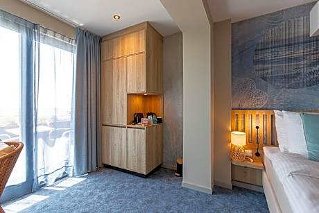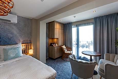 Beachfront Boutiquehotel is a completely renovated small-scale Boutique Hotel on Vlissingen's unique Boulevard. A hotel that offers panoramic views of the water all day long, from early morning to the magic of a spectacular sunset. So the ideal zen place to enjoy. Beachfront Boutiquehotel is a bed and breakfast hotel where you can book either with or without breakfast. This breakfast is served by room service. The hotel has been rigorously renovated and huge investments have been made in sustainable techniques and solutions, keeping the future in mind. A comfortable and modern four-star Boutique Hotel with styling, design and equal comfort with everything that really matters: a fantastic bed in a special environment, a feeling of coming home with at the same time a treat for the eye! Each room/suite has a name, referring to the sea and the beach. The special thing: the name is also reflected in the unique and personalized wallpaper. There are 21 rooms/suites, with 11 rooms and 2 suites on the sea side and 8 rooms on the city side. All rooms are accessible by elevator to the four floors. In addition, the front and back entrances have ramps. Each room/suite has a private shower/toilet, two extra long twin box-spring beds (90x210cm), air conditioning, smart television, wifi, safe, fridge, hairdryer, kettle for tea and a coffee machine with matching coffee cups, tea and other necessities. Our plus: on the sea side, a spacious balcony where you can dream away to a gentle summer breeze and the murmur of the sea. Or experience the unique sensation of watching the largest ocean-going vessels sail by, often piloted in front of you. Breakfast - r o o m s e r v i c e A delicious breakfast during your stay should not be missing, of course. We like to do things differently and we do not serve a standard breakfast. Some like to get up early, others like to sleep in ... Fortunately, you can order breakfast from 07.30 until 11.30 by room service. You can choose from three types of breakfast + children's breakfast. We serve breakfast at the room door in the form of a well-stocked breakfast basket. A better start to the day is almost impossible!