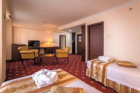 With a stay at Hotel Uzbekistan, you'll be centrally located in Tashkent, just a 4-minute walk from Amir Timur Monument and 5 minutes by foot from Amir Timur Museum. This hotel is 3.3 mi (5.4 km) from Tashkent Tower and 1 mi (1.6 km) from Fine Arts Museum of Uzbekistan. Make yourself at home in one of the 300 air-conditioned rooms featuring minibars and LCD televisions. Your Select Comfort bed comes with Egyptian cotton sheets. Satellite television is provided for your entertainment. Private bathrooms with bathtubs or showers feature complimentary toiletries and hair dryers. Treat yourself with massages, body treatments, and facials. If you're looking for recreational opportunities, you'll find a sauna and a fitness center. This hotel also features complimentary wireless Internet access, concierge services, and gift shops/newsstands. Enjoy Eastern European cuisine at Uzbekistan, one of the hotel's 2 restaurants, or stay in and take advantage of the 24-hour room service. Snacks are also available at the coffee shop/cafe. Wrap up your day with a drink at the bar/lounge. A complimentary buffet breakfast is served daily from 7 AM to 10 AM. Featured amenities include a computer station, complimentary newspapers in the lobby, and dry cleaning/laundry services. This hotel has 2 meeting rooms available for events. A roundtrip airport shuttle is provided for a surcharge (available 24 hours), and free self parking is available onsite.