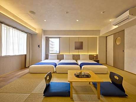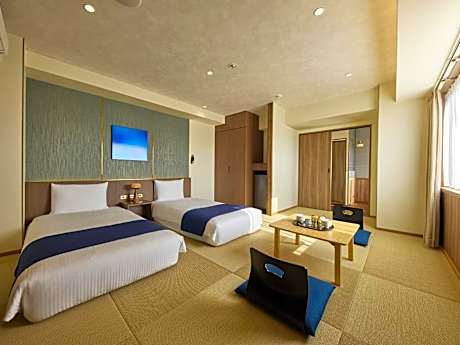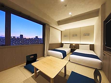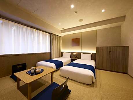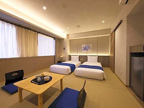 The twin room features air conditioning, tatami, as well as a private bathroom boasting a bath and a shower. The unit has 2 beds and 1 futon.