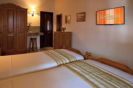 With its European Style, Hotel Westfalenhaus offers comfortable facilities in Asunción. Guests staying here can enoy a swimming pool, spa, restaurant and meeting facilities. The property features views of the garden and free WiFi access. All air-conditioned rooms have cable TV, private bathroom facilities and a hairdryer. Some feature a kitchenette and a balcony as well. The in-house Piroschka restaurant serves local and international dishes. Snacks, soft drinks and spirits are available at the bar. Guests can use a gym and a sauna. For sightseeing and short trips, the hotel has a tour desk. Free parking is also provided. Westfalenhaus is close to a golf course and hiking routes. Other points of interest nearby include the Maká Indian Reservation, Conmebol Museum and the Zoo. Located 5 mi from Silvio Pettirossi Airport, the hotel is less than 6.2 mi from central Asunción.