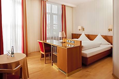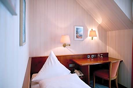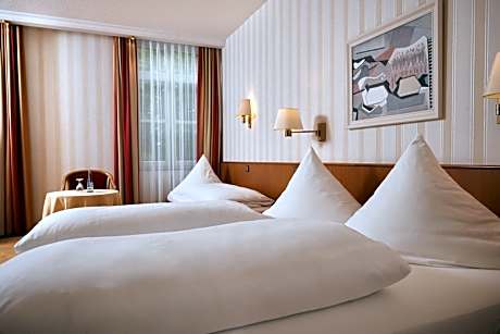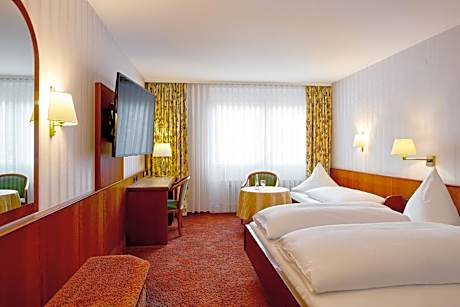 Located in the St. Georgen district in the south-western outskirts of Freiburg, this 4-star hotel with its own vineyard, distillery and large garden offers traditional Black Forest hospitality. The Hotel zum Schiff has been run by the same family since 1821. The classic and spacious rooms have been fully modernized and feature cable TV, broadband internet and free Wi-Fi. Wake up to a delicious breakfast buffet. In the restaurant you can enjoy a range of international cuisine and Baden specialties such as blue trout and head of veal, along with the hotel's own grown wines and distilled schnapps. Relax in the sauna and solarium of the Hotel zum Schiff. Near the hotel are the Eugen Keidel thermal baths with spa facilities. There is a bus stop in front of the hotel, taking guests to all historic attractions in the center of Freiburg. Guests with cars will appreciate the easy access to the A5 motorway, and can park for free on site.