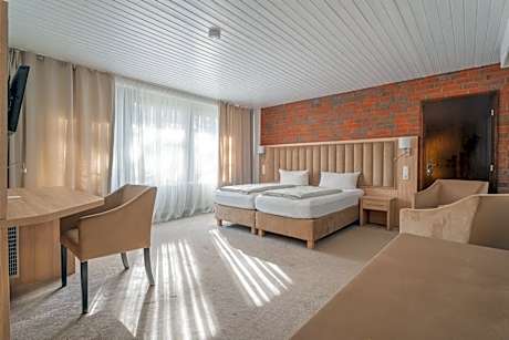 Hotel Zur Heidschnucke - Spa & Nature Resort features a garden, shared lounge, a terrace and restaurant in Asendorf. Providing a bar, the property is located within 12 miles of Theme Museum Heide. The hotel has an indoor pool, sauna and room service. At the hotel, each room comes with a closet. With a private bathroom equipped with a shower and a hairdryer, rooms at Hotel Zur Heidschnucke - Spa & Nature Resort also provide guests with free WiFi, while some rooms here will provide you with a balcony. At the accommodation every room comes with a desk and a flat-screen TV. A buffet, continental or vegan breakfast is available at the property. Hotel Zur Heidschnucke - Spa & Nature Resort has a playground. You can play minigolf at this 4-star hotel, and the area is popular for cycling. Dialogue House is 21 miles from the hotel, while Miniatur Wunderland is 21 miles away.