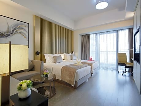 Experience an abundance of unparalleled facilities and features at Huafa Executive Apartment Hotel Zhuhai. Maintain seamless communication using the complimentary Wi-Fi at hotel. Discovering Zhuhai becomes even more accessible through the taxi, car hire and shuttle amenities provided at the hotel.For visitors traveling by automobile, complimentary parking is available.During your stay at this fantastic hotel, the attentive front desk personnel can provide you with a range of amenities such as concierge service, express check-in or check-out, luggage storage and safety deposit boxes.Obtaining passes for the town's top entertainments becomes effortless with hotel's tours. At the hotel, utilize the on-site laundromat, dry cleaning service and laundry service to maintain your beloved travel attire fresh, allowing you to bring fewer clothes. Craving relaxation? Make the most of your stay at the Huafa Executive Apartment Hotel Zhuhai with convenient amenities like room service and daily housekeeping at your disposal. For all your minor, last-minute requirements, the convenience stores can promptly cater to them, eliminating the need to venture out.Kindly note that smoking is prohibited in the hotel to ensure fresher air for all visitors.At Huafa Executive Apartment Hotel Zhuhai, every guestroom is provided with convenient amenities and fittings to ensure a comfortable stay. Enhance your experience at hotel with the knowledge that certain rooms are equipped with linen service, blackout curtains and air conditioning for your convenience. A few accommodations within Huafa Executive Apartment Hotel Zhuhai offer unique design elements such as a balcony or terrace.Certain rooms offer in-room amusement features such as the television for your enjoyment. In select rooms within the hotel, a refrigerator, bottled water, instant tea and mini bar is available to cater to your requirements when desired. In the hotel, certain guest bathrooms come equipped with essential bathroom amenities, such as a hair dryer, toiletries and bathrobes, ensuring a comfortable stay for guests. Begin your day with a scrumptious on-site breakfast available each morning at Huafa Executive Apartment Hotel Zhuhai.Begin your day feeling refreshed and invigorated as you enjoy a delightful cup of quality coffee available at the cafe situated within the hotel.At the hotel, an assortment of easily accessible and delicious meal choices are available to satisfy your appetite whenever it strikes. During your stay at hotel, an array of engaging activities and amenities guarantees a delightful experience. Discover the fitness amenities at hotel to maintain your health and strength during your getaway.