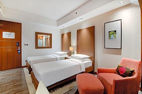 Nos esmeramos en garantizar la comodidad de nuestros huéspedes con servicios y comodidades de primera clase. ¿Necesita relajarse? Su habitación cuenta con servicio de limpieza diario para que su estancia sea aún más cómoda y placentera. Diseñadas para brindar un ambiente acogedor, cada habitación ofrece una variedad de comodidades que garantizan un sueño reparador, manteniendo el nivel de confort. Para una experiencia superior en el hotel, algunas habitaciones están equipadas con cortinas opacas para mejorar su estancia. En algunas habitaciones seleccionadas, los huéspedes pueden disfrutar de entretenimiento en la habitación, como periódico diario, transmisión de video y televisión por cable. Tenga la seguridad de que sus necesidades de hidratación estarán cubiertas, ya que algunas habitaciones están equipadas con té instantáneo y minibar. Cabe destacar que algunos baños cuentan con secador de pelo y artículos de tocador para su comodidad. Durante su visita, deléitese con una variedad de deliciosas opciones culinarias en el hotel para mejorar su experiencia.