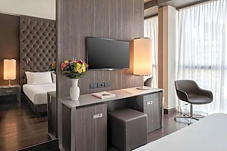 El Hyatt Centric Milan Centrale, con un bar en la azotea ubicado en la planta 13 y con impresionantes vistas al horizonte de la ciudad, ofrece habitaciones de lujo en el centro de Milán. Hay wifi gratuito en todas las instalaciones. Todas las habitaciones disponen de aire acondicionado, TV de pantalla plana vía satélite y caja fuerte para portátil. El baño privado incluye bañera o ducha, bidé y artículos de aseo gratuitos. Se sirve un desayuno dulce y salado a diario que incluye bebidas calientes, empanadas y embutidos. La piscina cubierta, el spa y centro de bienestar, y la sauna también están disponibles por un suplemento. El Hyatt Centric Milan Centrale está conectado con los aeropuertos de Malpensa, Linate y Orio al Serio. La catedral de Milán está a menos de 3 km.