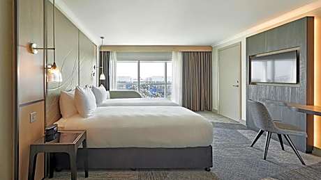 A solo 5 minutos en coche del aeropuerto de Heathrow, el Hyatt Place London Heathrow Airport, de 4 estrellas, ofrece habitaciones insonorizadas, recepción 24 horas y aparcamiento limitado para estancias cortas. El gimnasio totalmente equipado está disponible de forma gratuita, abierto las 24 horas para todos los residentes. El acceso ilimitado a internet gratuito está disponible para todos los huéspedes. Los canales por satélite de BT Sports se muestran en el gran televisor LCD del bar Coffee to Cocktail, que sirve una amplia selección de bebidas, cócteles y aperitivos. El Gallery Cafe sirve desayunos calientes y continentales, así como cocina europea moderna. Todas las habitaciones cuentan con aire acondicionado, baño privado y ventanas de triple acristalamiento, mininevera y caja fuerte para portátil. También incluyen un televisor grande, secador de pelo y set de té y café. Algunas habitaciones tienen excelentes vistas a las pistas.