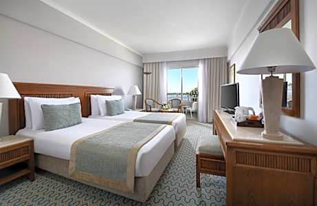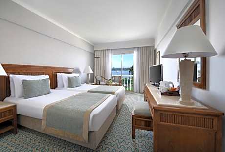 A heated pool floating on the Nile is one of the most unique features of this 4-star hotel. Overlooking the Theben Hills, Iberotel Luxor also offers a restaurant boat and rooms with private balconies. The generous breakfast includes cereals, yogurt, omelets, grilled vegetables and fresh Danish pastries. Guests can savor Egyptian, Mediterranean and Asian cuisine, while enjoying views of the Nile. The spacious rooms at Iberotel Luxor come with satellite TV and mini-bars. Each is air conditioned and has a safety deposit box. Centrally located in Luxor, the hotel is positioned directly on the Nile and just 10 minutes' walk from the Luxor Temple. Luxor Airport is 20 minutes' drive away. There are many historical sites to see and explore the world’s largest Luxor open-air museum. Guests can ask the concierge to assist them with recommendations and bookings. Guests can also enjoy romantic cruises down the River Nile, which can be arranged upon request in an added charge.