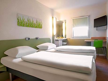 B&B HOTEL Rostock-Broderstorf is located a 10-minute drive from Rostock city center. The hotel offers free WiFI access and is just 2.8 mi from the Abbey of the Holy Cross and Museum of Cultural History. Each of the rooms at the hotel comes equipped with a flat-screen TV, air-conditioning, a toilet and a private shower cubicle. A fresh breakfast buffet is available at B&B HOTEL Rostock-Broderstorf, and there are vending machines at the hotel for drinks and snacks. A selection of restaurants and cafés can be found within a 1.2 mi radius of the accommodations. The Rostock Botanical Gardens are 4.3 mi from the hotel, and it is 3.4 mi to St. Mary’s Church. The St. Nicholas Church can be reached in 10-minutes by car. Free public parking is available at the hotel, and it is 1.1 mi to the A19 motorway.