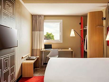 This ibis hotel is located in Massy, 9.3 mi from Porte de Versailles Exhibition Center and 1.9 mi from Les Baconnets RER Train Station. It features free WiFi, free private parking and a 24-hour reception. Massy - Palaiseau RER Train Station and Massy TGV Train Station are 3.4 mi away. All of the guest rooms at ibis Massy have a telephone, TV and private bathroom with shower. A buffet breakfast composed of sweet and savory dishes such as eggs, fruit salad, yogurts and juices is served every day. Pastries baked on site and fresh French Madeleine cakes are also on offer, as well as a hot beverage and a piece of fruit to take away. Outside of regular breakfast hours guests can also enjoy a lighter option, available from 04:00. A bar is also at your disposal on site. A public swimming pool can be found a 10-minute walk away. Accessible via the A6 and A10 motorways, this hotel is only 6.2 mi from Orly Airport and 12 mi from the center of Paris.
