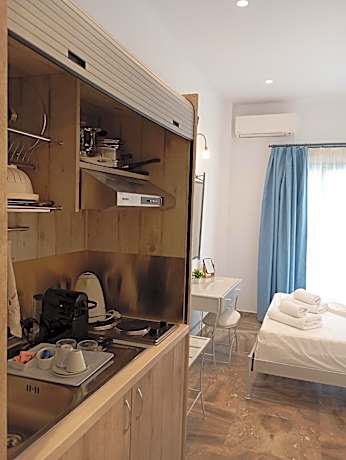 Ifestia Hotel is conveniently located approximately 328 feet from the black sandy beach of Kamari in Santorini. Free Wi-Fi internet access is provided in public areas of the hotel. The property features a swimming pool, a sun deck with loungers offering great views and a patio where guests can enjoy a refreshing drink or coffee. Breakfast items are provided in the studios. Set in the center of Kamari resort, these units offer private balconies with views of the surrounding area. Daily cleaning service is provided. Within 3 minutes walk, guests have the opportunity to reach the beach, restaurants, traditional taverns and bars. A mini market, a football pitch and a children’s playground are right next to the hotel.