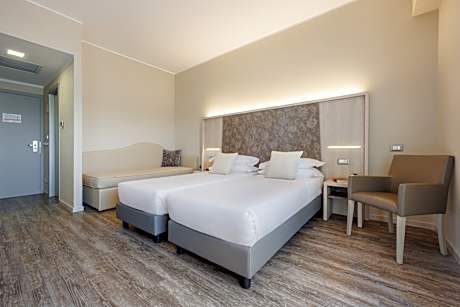 JR Hotels Gate 7 Bologna in Calderara di Reno is just 2.5 mi from Bologna Marconi Airport and 7.5 mi from Bologna Trade Fair. A large parking area and WiFi are both free. Rooms offer air conditioning and a satellite TV. Rooms also come with a balcony, mini-bar, and private bathroom. Deluxe and superior rooms also include bathrobes and slippers. This modern hotel is a 5-minute drive from the A14 motorway, and Bologna center is a 20-minute bus ride away.