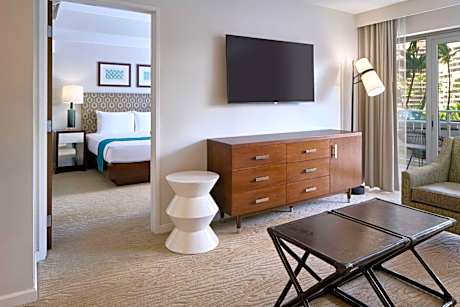 Ilikai Hotel & Luxury Suites is a Honolulu oceanfront hotel. It is located next to Waikiki Beach and 0.7 mi from Hawaii Convention Center. Each guest suite features private balconies with beautiful views. All suites offer a kitchen, a LCD TV, DVD movie rentals, ironing facilities, and an in-room safety deposit box. The full kitchen includes a 4-burner stove top, a microwave, a toaster, a refrigerator, and a coffee machine. Ilikai Hotel & Luxury Suites offers an outdoor swimming pool and fitness center. A 24-hour reception and bell service (7:00 a.m. - 11:00 p.m.) are also available. Featuring panoramic ocean views. Guests can also enjoy local coffee and baked goods at Aroma Caffe onsite. Open daily, Paradise Poke offers freshly made poke bowls and freshly made musubis. Retail shops include Soho New York Hair Salon (9:00 a.m. to 7:00 p.m.) and Ku'ai Market (7 a.m. to 10 p.m.) The Honolulu Zoo and the International Market Place are within 10 minutes' drive of the hotel.