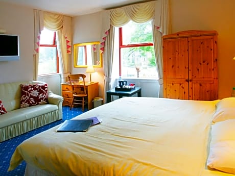Situado junto al Jardín Ilkley Riverside, el Hotel Ilkley Riverside ofrece habitaciones con baño privado y vistas al río Wharfe y al páramo de Ilkley. Con aparcamiento y wifi gratuitos, esta posada de Yorkshire sirve cervezas artesanales galardonadas y un completo menú de restaurante. Todas las habitaciones disponen de TV de pantalla plana, escritorio y set de té y café. Todas las habitaciones disponen de baño privado con ducha y secador de pelo. El restaurante sirve una variedad de deliciosos platos, como pastel de carne, champiñones y Guinness, y grandes pudines de Yorkshire rellenos de rosbif, verduras y salsa. También hay una selección de sándwiches, pizzas y platos vegetarianos. En verano, puede cenar en el patio con vistas al río, o en invierno, disfrutar de la cálida chimenea del bar del hotel. El Hotel Ilkley Riverside está a unos 10 minutos a pie del atractivo centro de la ciudad, donde se encuentran el Museo del Juguete de Ilkley y el Teatro King's Hall. Se pueden disfrutar de paseos panorámicos por el Dales Way, que cubre 84 millas desde Ilkley hasta Bowness-on-Windermere en Cumbria.