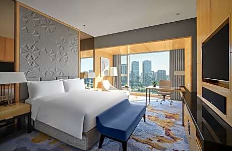 The Azure Ningbo, Vignette Collection provides flawless service and all the necessary facilities for visitors. Stay connected with your associates, as complimentary Wi-Fi is available during your entire visit.The hotel offers taxi and car hire amenities for your ease in navigating around Ningbo. When arriving by car, you'll be grateful for the on-site complimentary parking at hotel.The hotel offers reception amenities including concierge service, express check-in or check-out, luggage storage and safety deposit boxes to ensure a comfortable stay for guests.Should you require it, the ticket service can even assist you in booking tickets and securing reservations for the finest shows and events in the vicinity.Whether it's an extended stay or simply needing fresh attire, dry cleaning service and laundry service provided by hotel ensures your cherished travel garments stay spotless and accessible.Your stay will be comfortable with the presence of room service and daily housekeeping as an in-room amenity for your relaxation and enjoyment.To ensure the well-being and convenience of all visitors, smoking is strictly prohibited throughout the entire hotel.In order to ensure the utmost level of relaxation, the guestrooms feature an inviting design and are equipped with all basic necessities, creating a delightful stay experience. To ensure a pleasant stay, a selection of rooms at hotel come furnished with linen service, blackout curtains and air conditioning, all designed with your ease in mind.In select rooms, visitors can enjoy a touch of amusement with the availability of daily newspaper, television, in-room video streaming and cable TV for their entertainment needs.Within specific rooms, a refrigerator, a coffee or tea maker, bottled water, instant coffee, instant tea and mini bar is conveniently available for your use. Understanding the significance of bathroom facilities in enhancing visitor contentment, hotel offers a hair dryer, toiletries and bathrobes within a few chosen chambers.To experience refined leisure, do not miss the opportunity to drop by the executive lounge. Start your day stress-free at The Azure Ningbo, Vignette Collection as breakfast is made available for you on the premises. Various excellent meal offerings at hotel ensure that enticing and easily accessible options are constantly available.Upon arrival, make sure to explore karaoke rooms and bar to experience enjoyable evening entertainment within the premises.Visitors wishing to create their personal culinary delights will appreciate the on-site BBQ facilities provided at this establishment.Throughout the day, engage in the entertaining activities available at The Azure Ningbo, Vignette Collection. Unwind and conclude each day delightfully by stopping by massage and spa, ensuring a soothing experience.Unwind by the pool at hotel and cherish a leisurely moment.Guests who enjoy maintaining their fitness regimen while on holiday can visit the fitness center provided by hotel.