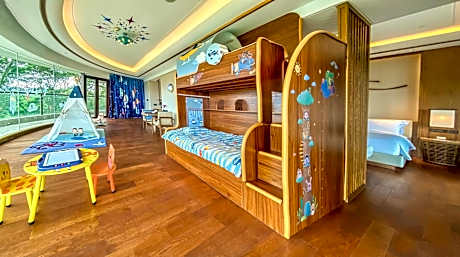 Equipped with various parent kid facilities and occupied 138QM.Facing to the phase II of CDF mall. With Kid bunk bed cartoon tent, bath amenities. Enjoy exclusive club lounge access with breakfast , afternoon tea and cock tails. With Bose sound system, multimedia telephone and Dyson hair dryer.