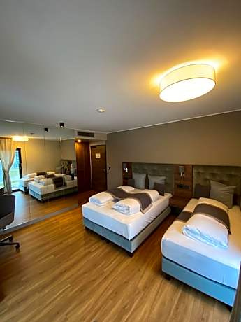 Located in Kösching, 5.7 miles from Saturn-Arena, Intergroup Business & Design Hotel Ingolstadt has accommodations with a fitness center, free private parking, a shared lounge and a terrace. With a restaurant, the 4-star hotel has air-conditioned rooms with free WiFi, each with a private bathroom. The property provides a shared kitchen, a tour desk and luggage storage for guests. At the hotel, the rooms come with a desk. Selected rooms also feature a kitchen with a fridge and a stovetop. All rooms at Intergroup Business & Design Hotel Ingolstadt come with a flat-screen TV with satellite channels and a safety deposit box. Breakfast is available, and includes buffet, continental and vegetarian options. A business center and vending machines with snacks and drinks are available on site at the accommodation. Speaking German, Greek, English and Turkish at the 24-hour front desk, staff are always on hand to help. Audi Forum Ingolstadt is 5.8 miles from Intergroup Business & Design Hotel Ingolstadt. Munich Airport is 47 miles from the property.