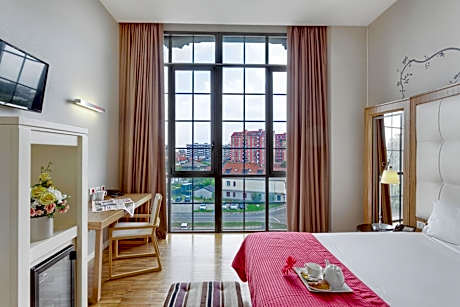This spacious and comfortable room has high ceilings and parquet floors. It features free WiFi, a work desk and flat-screen TV with satellite channels.