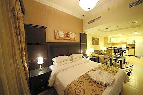 Ivory Grand Hotel Apartments offers top-notch services and amenities, ensuring guests experience utmost comfort. Share your photos and respond to emails at your convenience, thanks to the free Wi-Fi internet access offered by serviced apartment. Should you require transportation to or from the airport, serviced apartment is able to organize it prior to your arrival date. Taxi, car hire and shuttle offerings at the serviced apartment simplify arranging your excursions, explorations, and additional activities in Dubai.Visitors can take advantage of complimentary parking directly at the serviced apartment.Reception services such as concierge service, express check-in or check-out, luggage storage and safety deposit boxes are available to accommodate your requirements.Should you desire access to the top entertainment in the city, assistance can be provided by the serviced apartment's tours.Traveling with minimal baggage is achievable at Ivory Grand Hotel Apartments, as the serviced apartment's laundromat, dry cleaning service and laundry service ensures your garments stay fresh.Room amenities like 24-hour room service, room service and daily housekeeping contribute to making a perfect selection for your stay. The serviced apartment maintains a completely smoke-free zone, providing a breathable atmosphere.Each accommodation at Ivory Grand Hotel Apartments is thoughtfully created and adorned to provide visitors with a comfortable, home-like atmosphere.In certain rooms, the serviced apartment offers linen service, blackout curtains and air conditioning for guest convenience and satisfaction. At Ivory Grand Hotel Apartments, uniquely crafted rooms provide various layout choices, featuring spaces equipped with separate living room and balcony or terrace.In select rooms, guests at the serviced apartment can enjoy top-notch in-room entertainment with television and cable TV available for their convenience. Rest assured, in a few chosen rooms, you will find the convenience of a refrigerator and a coffee or tea maker at your disposal. Maintain your cleanliness and comfort using a hair dryer and toiletries available in select guest restrooms. Embark on your holiday experience in the most ideal manner. Commence each morning of your visit with an on-site breakfast.Experience the delight of a fresh morning by savoring excellent coffee at the cafe situated within serviced apartment. Should you prefer not to venture out for a meal, the enticing culinary choices at serviced apartment are always available for your satisfaction. No matter your specific dietary needs, rest assured that Ivory Grand Hotel Apartments provides an array of halal choices to ensure your dining experience is nothing short of delightful. For those who prefer savoring meals within their personal space, Ivory Grand Hotel Apartments offers the convenience of doorstep grocery delivery, allowing you to prepare and enjoy food in your room. Should you be particularly discerning in your dining choices, you will surely appreciate having access to the on-site shared kitchen provided at this location. Ivory Grand Hotel Apartments provides a superb assortment of leisure amenities for guests to enjoy. Unwind after a long day by stopping by massage, steam room, spa and sauna to rejuvenate your senses.Each day at serviced apartment, immerse yourself in the invigorating waters of the pool, perfect for a rejuvenating plunge or a series of revitalizing laps.For individuals who don't want to skip their exercise routine, visiting the serviced apartment fitness center ensures you maintain your vitality and wellness.