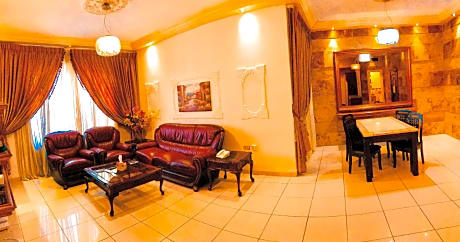 At Jad Hotel Suites, exceptional service and top-notch amenities create a memorable experience for guests. Complimentary internet access is available in the serviced apartment to ensure you stay connected during your visit. Arrange your trips to and from the airport using the serviced apartment's convenient transportation services booking.Discover the wonders of Amman with ease by utilizing the services provided by taxi and shuttle. Complimentary parking is available for guests. Continuously receive the support you require through front desk amenities such as concierge service, express check-in or check-out, luggage storage and safety deposit boxes. At the serviced apartment, their ticket service and tours is also capable of assisting with booking tickets and securing reservations for entertainment and adventures. Always look your best in your preferred attire with the dry cleaning service and laundry service provided at Jad Hotel Suites. Craving relaxation? In-room amenities such as 24-hour room service, room service and daily housekeeping allow you to maximize your time spent inside the room. Due to health concerns, smoking is strictly prohibited within the entire premises of serviced apartment.For the health and well-being of all guests and staff, smoking is restricted exclusively to assigned zones. Accommodations come equipped with all the conveniences required for a restful night's slumber. A selection of rooms at Jad Hotel Suites come furnished with air conditioning to cater to your needs and comfort. A few chosen rooms are equipped with television and cable TV to ensure guest amusement.In certain rooms, the serviced apartment offers visitors access to a refrigerator, bottled water and a coffee or tea maker.At Jad Hotel Suites, select bathrooms are equipped with a hair dryer to enhance your comfort during your stay. At Jad Hotel Suites, each day commences with a scrumptious breakfast offered at no additional cost. All adore a delightful cup of coffee! An on-site coffee shop ensures you can relish a cup of authentic, freshly-brewed coffee every morning -- or whenever you desire it. Allow your journey to be free from the pangs of hunger! On-site eateries offer delicious and accessible meal choices. At Jad Hotel Suites, guests with diverse dietary needs are accommodated by offering options like halal among the different types of cuisine.An evening spent at serviced apartment's bar can offer as much enjoyment as venturing out with your fellow travelers.At Jad Hotel Suites, experience the ease of having groceries brought straight to your accommodation through their efficient service. At Jad Hotel Suites, guests can take pleasure in the delightful recreational amenities provided for their entertainment. Conclude your days in complete tranquility by paying a visit to hot tub, steam room, spa and sauna for ultimate relaxation. At the serviced apartment fitness center, you have the option to engage in your daily exercise routine or simply alleviate your jet lag by breaking a sweat.