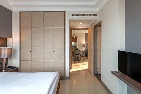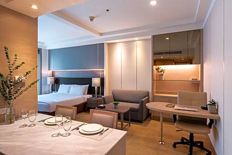 Providing free toiletries and bathrobes, this triple room includes a private bathroom with a bath, a shower and a hairdryer. The well-equipped kitchen features a refrigerator, kitchenware, a microwave and an electric kettle. The spacious air-conditioned triple room provides a flat-screen TV with cable channels, a mini-bar, a seating area, a dining area as well as city views. The unit offers 3 beds.