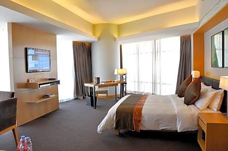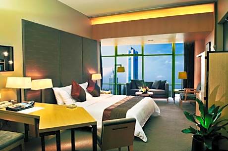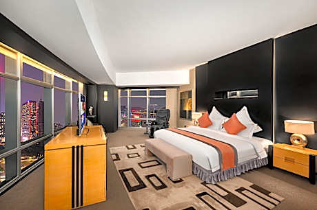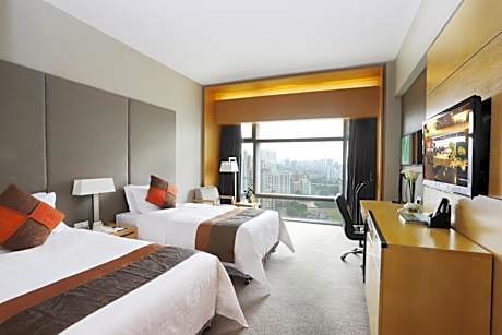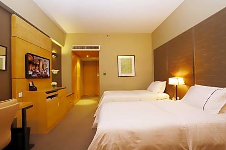 Jianguo Hotel Guangzhou offers top-notch services and amenities, ensuring guests experience utmost comfort.Share your photos and respond to emails at your convenience, thanks to the free Wi-Fi internet access offered by hotel.Taxi, car hire and shuttle offerings at the hotel simplify arranging your excursions, explorations, and additional activities in Guangzhou.Visitors can take advantage of complimentary parking directly at the hotel. Reception services such as concierge service, express check-in or check-out, luggage storage and safety deposit boxes are available to accommodate your requirements. Securing top-notch tickets and snagging sought-after dining reservations become effortless, thanks to the hotel's ticket service and tours.Traveling with minimal baggage is achievable at Jianguo Hotel Guangzhou, as the hotel's dry cleaning service and laundry service ensures your garments stay fresh.Room amenities like 24-hour room service, room service and daily housekeeping contribute to making a perfect selection for your stay. Minor items you neglected to bring won't cause major issues! Simply visit convenience stores to acquire what's necessary.The hotel maintains a completely smoke-free zone, providing a breathable atmosphere. Smoking is limited to specified smoking zones.Each accommodation at Jianguo Hotel Guangzhou is thoughtfully created and adorned to provide visitors with a comfortable, home-like atmosphere. In certain rooms, the hotel offers blackout curtains and air conditioning for guest convenience and satisfaction.In select rooms, guests at the hotel can enjoy top-notch in-room entertainment with daily newspaper, television and cable TV available for their convenience. Rest assured, in a few chosen rooms, you will find the convenience of a refrigerator, a coffee or tea maker, bottled water, instant coffee, instant tea and mini bar at your disposal.Maintain your cleanliness and comfort using a hair dryer, toiletries and bathrobes available in select guest restrooms.Immerse yourself in the executive lounge, where exceptional amenities and lavish surroundings await you. Embark on your holiday experience in the most ideal manner. Commence each morning of your visit with an on-site breakfast. Experience the delight of a fresh morning by savoring excellent coffee at the cafe situated within hotel. Should you prefer not to venture out for a meal, the enticing culinary choices at hotel are always available for your satisfaction. Experience an amazing evening effortlessly! Have an enjoyable night without venturing beyond the premises at karaoke rooms, bar and nightclub. Jianguo Hotel Guangzhou provides a superb assortment of leisure amenities for guests to enjoy.Unwind after your day by exploring the massage and find warmth and relaxation.Each day at hotel, immerse yourself in the invigorating waters of the pool, perfect for a rejuvenating plunge or a series of revitalizing laps. For individuals who don't want to skip their exercise routine, visiting the hotel fitness center ensures you maintain your vitality and wellness.