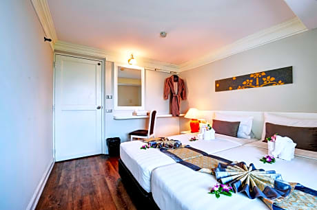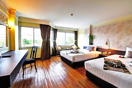 Located only a short walk from the beach, Jomtien Garden Hotel & Resort welcome guests with a eclectic mix of rustic Thai and modern accommodations. Featuring genuine wooden furnishings and decor, the rooms are fitted with air conditioning, a flat-screen TV and a refrigerator with complimentary drinking water. The private bathrooms has a bath or shower, a hairdryer and free toiletries. Sports and recreational activities on-site include two outdoor swimming pools, a tennis court as well as spa and massage facilities. Travel recommendations and tour bookings can be made at the helpful tour desk. For families with children, the resort comes equipped with a children's pool and a playground. The four on-site restaurant serves a variety of dishes including seafood, Thai and international favorites. Refreshing drinks and ice-cream can be enjoyed at the Pool Cafe, open daily from 10:00 - 19:00 hrs. For those who want added privacy, room service is also available for 24 hours. Jomtien Garden Hotel is about a 15-minute drive from the family's favorite Underwater World Pattaya and Pattaya Park. Nightlife entertainment can be found at Walking Street Pattaya, located 3.7 mi away. Pattaya is approximately a 2-hour drive from Bangkok and 15-minutes away from Pattaya city center.